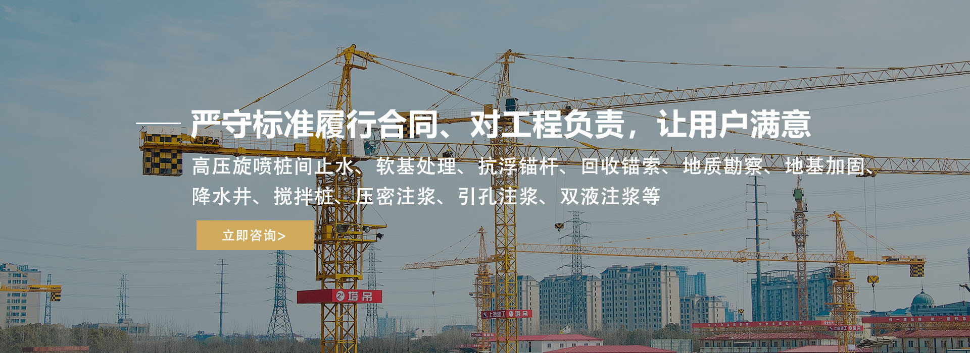 公司主營(yíng):高壓旋噴樁間止水、軟基處理、抗浮錨桿、回收錨索、地質(zhì)勘察、地基加固、降水井、攪拌樁、壓密注漿、引孔注漿、雙液注漿等,公司規(guī)模龐大,不斷超越、追求完美,誠(chéng)信為本、創(chuàng)新為貌、嚴(yán)守標(biāo)準(zhǔn)履行合同,工程優(yōu)質(zhì)、信譽(yù)至上,對(duì)工程負(fù)責(zé),讓用戶滿意。